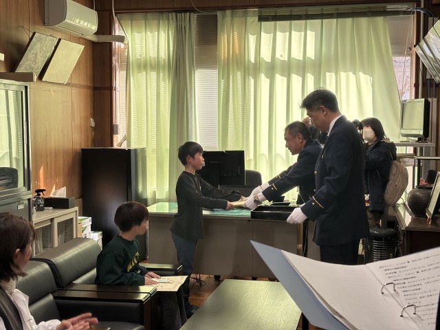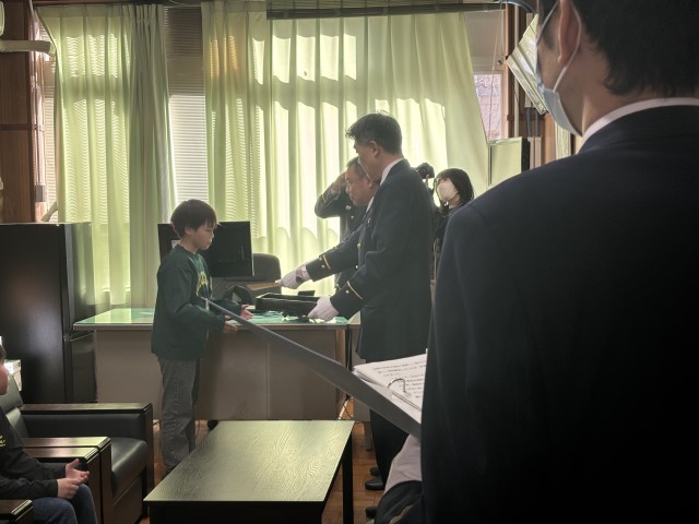 つばさ学級の児童2名が倒れたおじいさんを発見したことが人命救助につながったとして、昨年度3月に左京消防署から感謝状が贈呈されました。