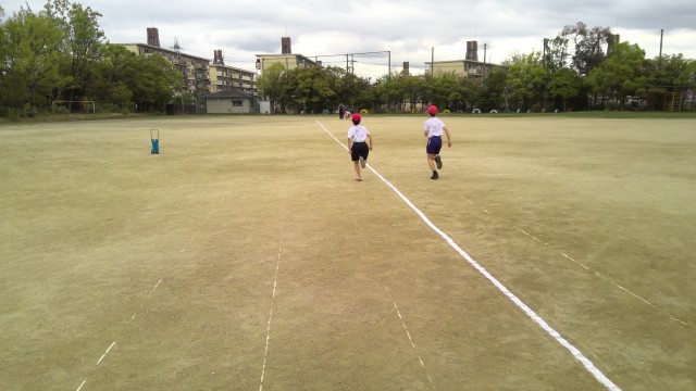 50m走のタイムを計測しました。昨年度よりもタイムが縮んでいる児童が多く、喜んでいる児童がたくさんいました。運動会で一生懸命走る姿が楽しみです。