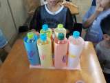 生活科「あそんで作ってくふうして」の学習でお家から持ってきた身の回りのものを使っ...