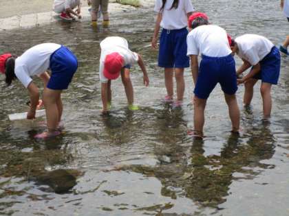 7月7日(金),5年生は総合的な学習(環境について)で,小畑川の水質調査を行いました。精華大学の板倉教授やボランティアの皆様にお世話になり,小畑川の環境を調べました。始めに水のPH,COD,NO2を試薬で調べました。生き物が棲めるきれいな水質であることが分かりました。