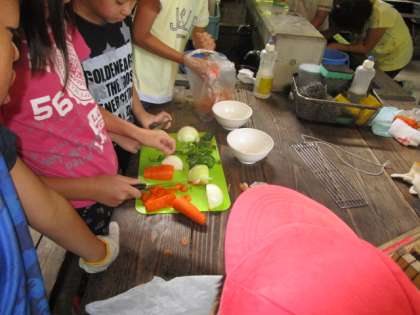魚の串焼きの次はバーベキューです。肉,野菜などおいしくいただきました。