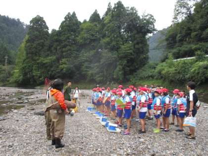 指導していただく大学の先生や学生さんの話を聞いて,生き物を探しに行きます。