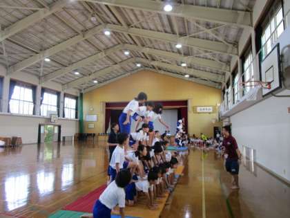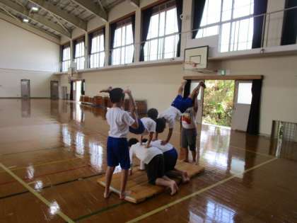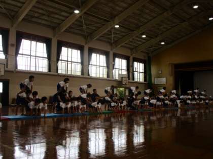 5年生,6年生が合同で組体操の練習をしています。まだまだ途上中ですが,少しずつ進歩しています。最後まで気を緩めず,練習を続けていきます。