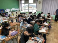 4年生では,俳句作りに挑戦しました。俳句とは何か,どうやって作るのか,など俳句に関する基本を学校司書の先生から教わりました。いろいろな本から俳句作りに必要な言葉を探して,一句思い浮かべていました。