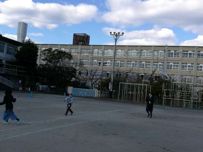 自分たちで作った凧を使って,凧揚げをしました。今日はあまり風がなく,高く飛ばすことができませんでしたが,子どもたちは,運動場を楽しそうに走り回っていました。