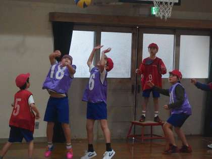 4年生は体育の授業でポートボールをしています。コートの中のプレーヤーは,みんなでうまくパスを回そうと工夫しています。シュートは,ゴールマンが受けることができるボールを投げないといけません。どのチームも作戦を考えて,白熱したゲームが展開されています!ケガに十分気をつけましょう。
