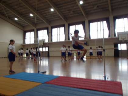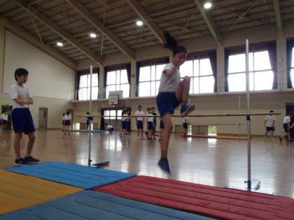 助走のリズムや踏み切り、空中姿勢など自分のめあてをもって学習に取り組んでいます。