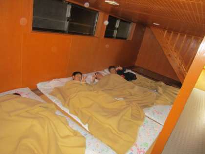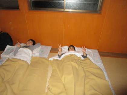 バンガローでの宿泊1日目,ワクワクしながら布団に入りました。なかなか寝付けなかった子もいましたが,朝は元気に顔を揃えました。