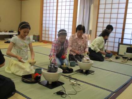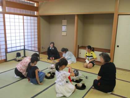 毎月1回の茶道教室,今月は2日に行われました。茶道の先生のご指導のもと,お点前を教えていただき,お客さん役にもなって,手ほどきを受けました。茶道の仕草にはいろいろな意味が含まれていることを毎回少しずつ学び,上達しています。