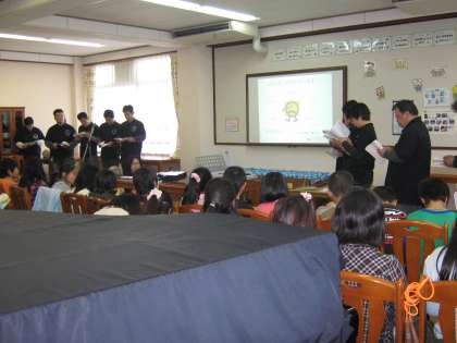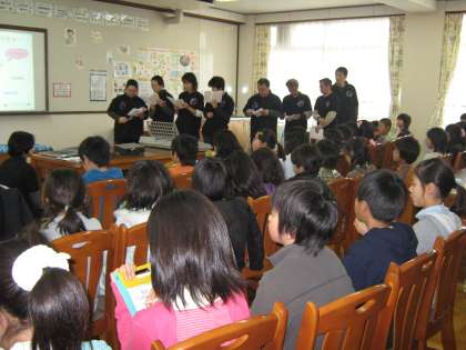 以前にも紹介しましたが,4年生の総合的な学習の大きなテーマが『福祉』の学習です。前回は全盲の松永氏をゲストティーチャーに迎え,「視覚障害」について学びました。今回は自由参観の時間に,地域の共同作業所「たんぽぽハウス」の方に「精神障害」がある人の様子やがんばってらっしゃることなどについて,いろいろと教えていただきました。