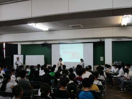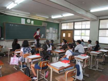 9月7日(金),6年生は洛西中学校のオープンスクールに参加しました。生徒会のみなさんからの学校紹介の後,授業体験をしました。楽しい授業体験をして,進学への意欲付けになったと思います。洛西中学校の教職員・生徒会の皆様ありがとうございました。