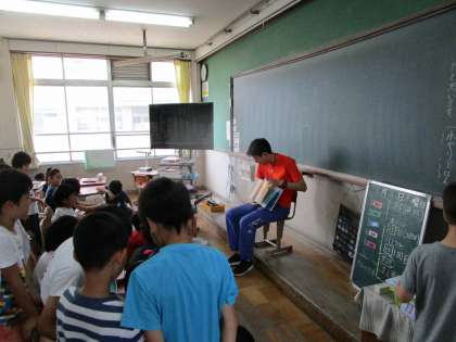 今週は読書週間(あじさい読書週間)です。その一つの取組として,学級担任以外の教員が各教室へ行って読み聞かせを,朝読書の時間を利用して行っています。担任の先生以外の先生から本を読んでもらい,興味津々に聞いていました。
