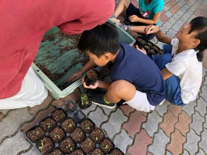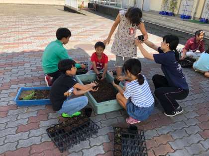 桂高校の生徒さんに教えていただきながら,パンジー苗の移植をしました。ポットでしばらく育ててから,校章園の花壇に植え替えます。どのような花が咲くのか楽しみです。