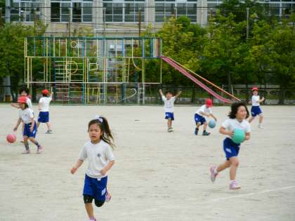 これまで体育の学習で「こおりおに」「バナナおに」「手つなぎおに」などたくさんのおにあそびをしてきました。今日は「当ておに」をしました。ボールを持ってみんな元気に追いかけあっていました。