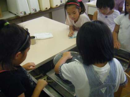 生活の「やさいを育てよう」の学習で育てたトウモロコシを夏休み前に収穫しました。そして,夏休みの間じっくり乾燥させていたものを,今日家庭科室でポップコーンにしました。重たいフライパンを一生懸命ゆらしながら,おいしいポップコーンができました。