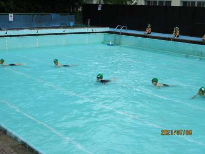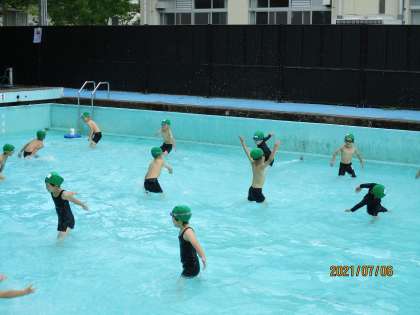 初めての水遊びでした。低水位でしたので,ワニ泳ぎもすいすい。「水が冷たかったので気持ちがよかった。」と笑顔ではなしていました。