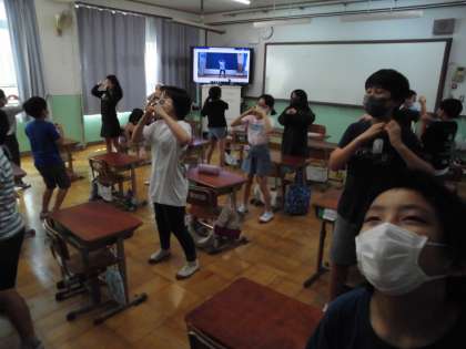 CCタイムはいつも算数の力をしていますが,体育参観日も近いということで全校ダンスの練習にも励んでいます。