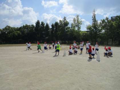 チームのみんなが笑顔になるために!「楽しかった」と終われるように!とチームで考え作戦を立てて,練習しています。その成果が!今日は,今までにない接戦をくりひろげた4チーム!だれもがみんなのために,力と知恵をふりしぼっています。コーンのまわり方もすごく上手です。