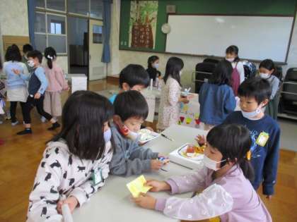 先週の金曜日,2年生から嬉しいご招待がありました。2年生の生活科「遊んでためしてくふうして」の学習で作ったゲームやおもちゃの披露の会です。アイデアいっぱいのおもちゃにみんな大喜びでした。素敵な景品にも感激していました。2年生,ありがとう。