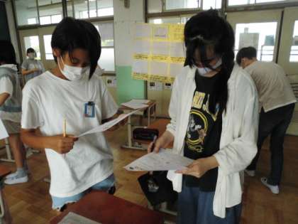 さらに全員と関わるため,『BINGO×夏休みの思い出』を行いました。友だちとじゃんけんして勝ったら質問でき,BINGOを完成させます。「じゃんけんしよー。」と自分から誰にでも声をかけにいける姿,素敵ですね。