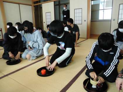 14日(金)に,講師の方にお越しいただき,茶道教室を実施しました。席入りから,和菓子をいただき,自分で点てたお茶を飲む経験をしました。「お先に」と相手を思いやる茶道の精神に触れることができました。自分で点てたお茶は「苦いか心配だったけど美味しかった」と話す子もたくさんいました。