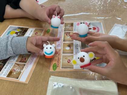 イングランドの丘ではまずクラフト体験をしました。自分だけのキャンドル作りです。ロウを自分の体温で温めて柔らかくし、好きな形に整えます…目や耳,口など、工夫して作りました。お土産の一つになりそうです。