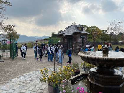 イングランドエリアはコスモス畑やバラ園が。イギリスを思わせる風景に四季折々の花々が色を添えています。昼食までに少しだけフリータイムです。