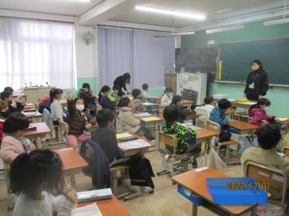 1年生にとっては,初めての人権について考える朝会。人権てなに?どういうこと?でも担任の先生が優しく教えている姿がありました。だから,自分も人も大切にしようとする1年生がとってもかわいかったですという意味。