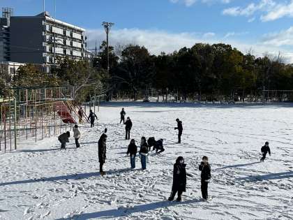 真っ白な雪が一面に積もった運動場。