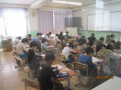 ※いつもなら元気いっぱい元気もりもりの3年生がすさまじく真剣モード。なんでかな?あっテストかな?みんな学年の最後だからこそ一生懸命取り組んでいますという意味。