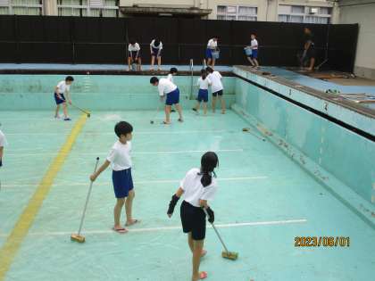6年生によるプール清掃の様子です。