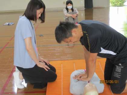 水泳学習ももう間近です。そこで本校では消防局の方にお世話になり、救命講習を受講しました。