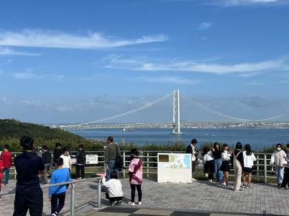 淡路海峡大橋をバックに記念撮影。