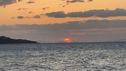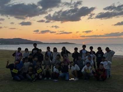慶野松原の夕陽をバックに記念撮影。良い思い出になりましたね。