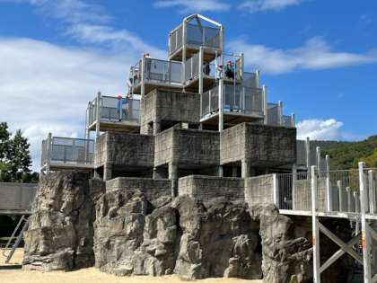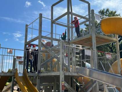 巨大ジャングルジムがあるわんぱく砦で遊びました…学校の総合遊具とは比べ物にならないくらい大きな遊具でした。