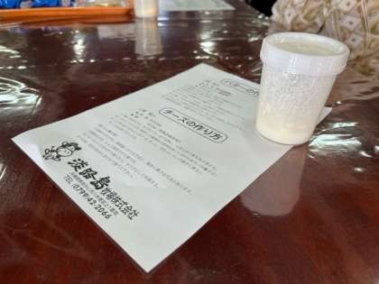 さそ淡路島牧場での最後の活動はバター作りです。容器に入った牛乳(成分無調整)と生クリームを上下に強く振って混ぜ合わせます。しばらくすると、分離してできた低脂肪乳とバターが出来上がります。