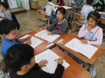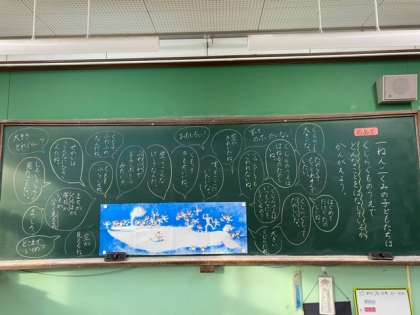くじらぐものお話が大好きな1年生。だんだん音読も上手になってきました。くじらぐもにのっているとき、子どもたちはどんな気持ちかな?どんなことを話しているのかな?みんなでたくさん想像しながら楽しく学習しています。