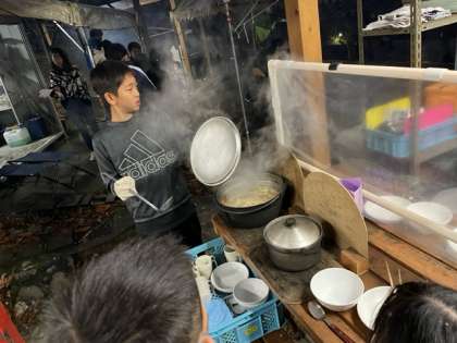 火の加減がうまくいった班は晩御飯が出来上がりました。一番乗りです。