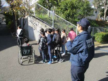 作った安全マップを使って警察・役所の方々に報告しました。また、実際に現地へも行き、どのように危ないのかを話しました。大人では気付きにくい、子どもたちならではの視点からの報告もありました。『自分たちの思いが洛西を変える』大切な機会となりました。
