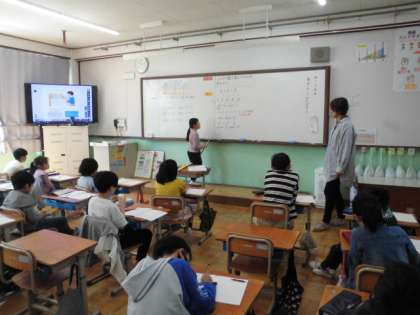 0のかけ算の答えの求め方について、考え方を伝え合いながら学習しました。