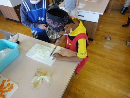 14日(月),みさきの家で行う野外炊事の事前学習として,コンソメスープを作りました。