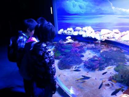 鳥羽水族館での見学活動です。グループで回ったりしています。