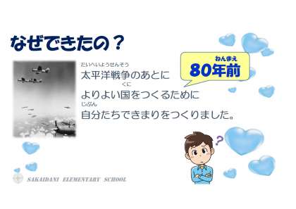 5月の児童朝会で、憲法記念日について話をしました。