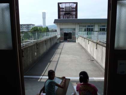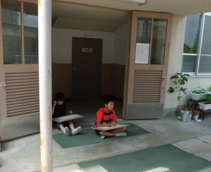 遠近感に気をつけて,今回は廊下をテーマにスケッチです。奥行きを表現しようと,みんな集中してがんばっていましたが,線をつなげる方向に悩んでいました。次回も遠近感をテーマに絵を丁寧にスケッチしていきたいと思います。
