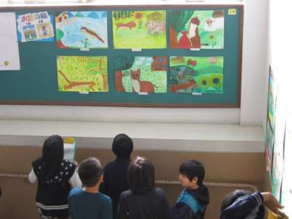 7日(水),図工で描いたお話の絵の観賞会をしました。