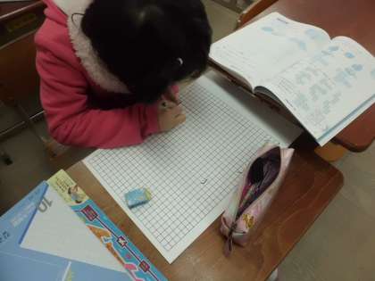 辺や面の位置関係をよく考えながら,方眼紙に線をかいていきました。