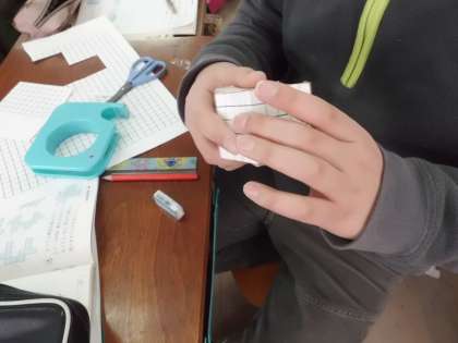 組み立ての際には,ちゃんと箱になるかとドキドキワクワクしながら作業を進めていましたが,ぴったり箱になるととてもうれしくて,もっと作りたいという意欲をもって取り組んでいました。