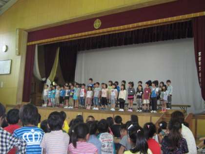 全校児童の前で堂々としっかりとした姿を見せることができた1年生。