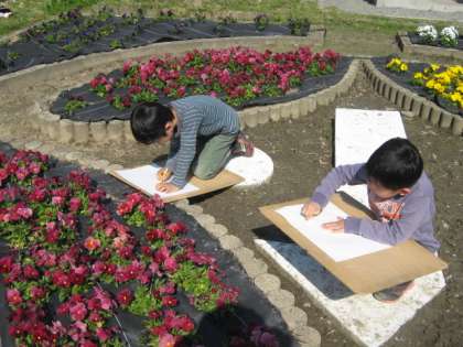 図画工作科で,春の花を描きました。今までの生活科や今年から新たに学ぶ理科での観察の方法を採り入れ,しっかり・じっくり・まじまじと観察したものを,紙に描き表しました。