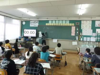 わり算の筆算をする時の合言葉(たてて→かけて→ひいて→おろす)を口にしながら,みんなで楽しく学習を進めています。